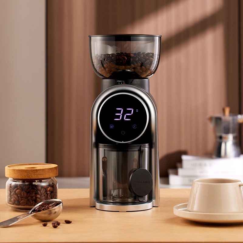 Ο μοντέρνος αυτόματος μύλος κόκκων καφέ HUBO, Έλεγχος με ένα κουμπί, σας κάνει τη ζωή του καφέ πιο εύκολη και απολαυστική, ένα κουμπί για να ρυθμίσετε τα φλιτζάνια του καφέ, ένα κουμπί για να ρυθμίσετε το χρόνο άλεσης, 25 ρυθμίσεις από χοντρό έως λεπτό. μπορεί να ικανοποιήσει τις ανάγκες της σκόνης καφέ Espresso, της σκόνης καφέ Mocha, της σκόνης τουρκικού καφέ και της σκόνης καφέ pour-over.